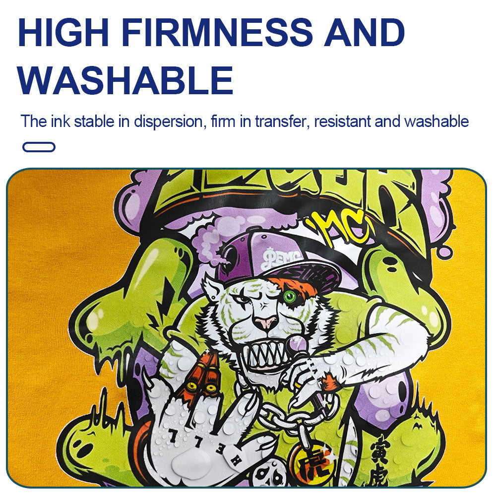 DTF textile printing ink highly compatible with EPSON13200-A1 head. You can directly print your designs ondifferent textiles and fabrics using Direct to Film Ink technology by using DTF printer.